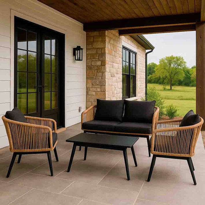 Conjunto Jardín Ratán Marrón Y Negro