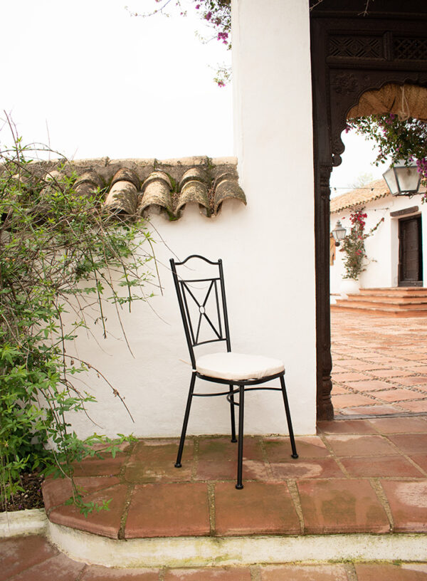Si no te decides por el color negro y quieres arriesgar y usar tonos claros, te recomendamos que eches un vistazo a la Silla de Forja Blanca. Elegante, sofisticada e igual de bonita que la silla en color negro. ¿Con qué color te quedas?